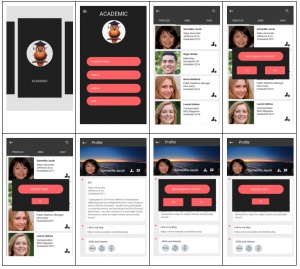 (2) Connecting to the alumni of HMKW - here the user was required to assess in which category this can be found, then they were about to encounter alumni profile and sending a friend request