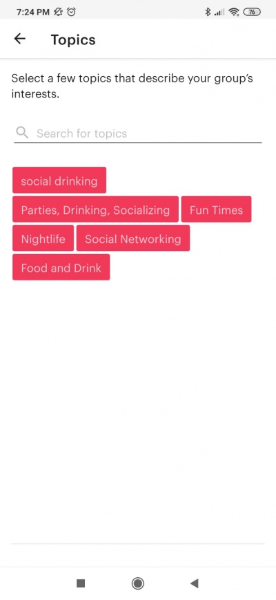 • Interests: as a basis for events: gaming, board games, cooking, sports/fitness, music (definition of genres), movies, hiking, tech, beauty, shopping.