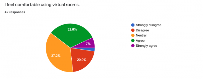 37.2% participants responded as neutral about feeling comfort using virtual rooms. Moreover, 32.6% participants responded as agree about feeling comfort using virtual rooms.