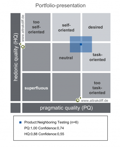 The confidence rectangle indicates the users preference and evaluation of the prototype. A small confidence rectangle in the section of Self oriented & desirable means that the investigation results are more reliable and less coincidental.