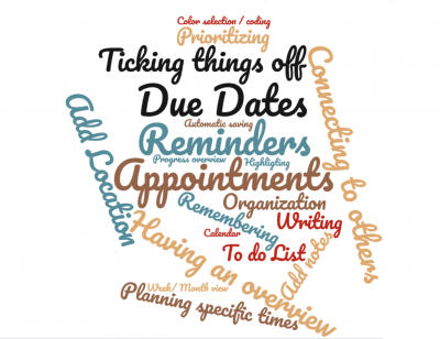 - Resolution: Task sizes, effort and time measure can help with anti-procrastination, practical/writing support, scheduling/timekeeping; can give you an overview of what you need to do