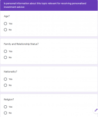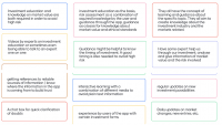 The purpose of the Focus Group was to engage with our potential users in order to find out further needs of future investors. We decided to divide groups into two, in order to see what could be the difference in the needs of non-experienced participants vs experienced ones and to understand how their needs and ideas overlap. The goals of focus groups were to explore desired functions of investment app, to understand what expectations they would have from the app and also to see how relevant/irrelevant questions and functions of the app would be. Most of all, we want to have some ideation rounds to come up with collaborative ideas for the design of our app.