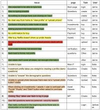 - Lists were made post-task of all the problems the participant verbalized or seemed to have while navigating the platform.